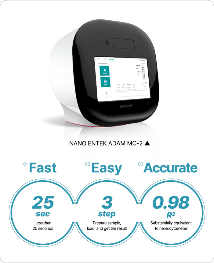 可精确测定干细胞数量及细胞存活率,并能在 25秒内完成检测并输出结果。